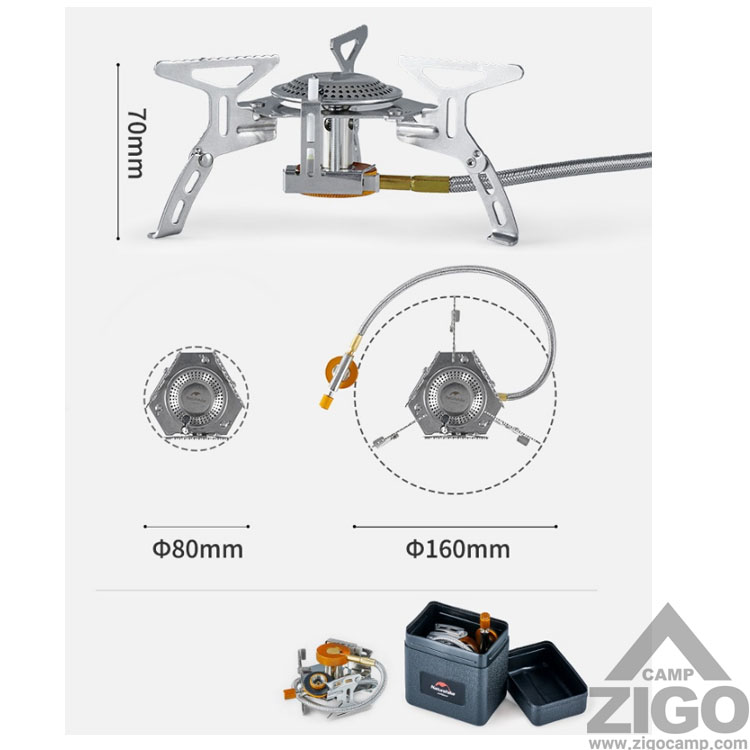 سرشعله شلنگ‌دار Naturehike NH21RJ009، اجاق گازی تاشو سه پایه با وزن سبک و طراحی جمع‌وجور است که برای کمپینگ، پیک‌نیک و کوهنوردی گزینه‌ی ایده‌آلی است.